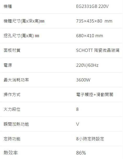 【日成】SAKURA櫻花牌 雙口IH感應爐 3600W總功率 EG2331GB