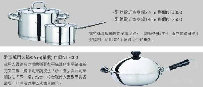 目前隨貨贈以下3個鍋具: 炒鍋、湯鍋18cm .22cm各1個