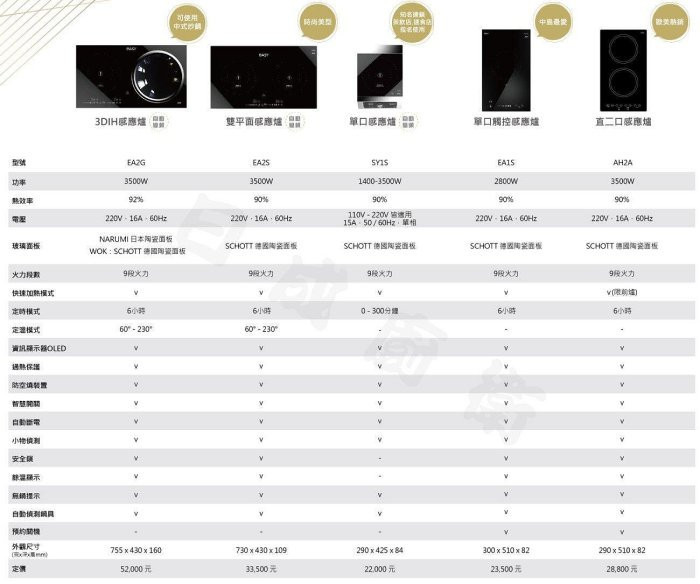 羿麗單口感應爐採用歐系品牌高規格同級加熱盤,避免產生使用瓦斯燃燒不全及外洩之問題,全電壓設計,讓IH感應爐可以帶著走,走向國際免煩惱