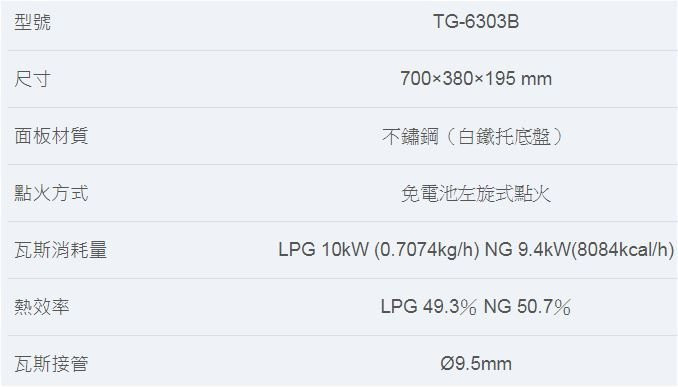 【日成】莊頭北傳統式瓦斯爐 TG-6303B 整台不銹鋼.2級能效