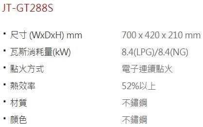 【日成】喜特麗.晶焰.雙口.傳統式瓦斯爐 (JT-GT288S)