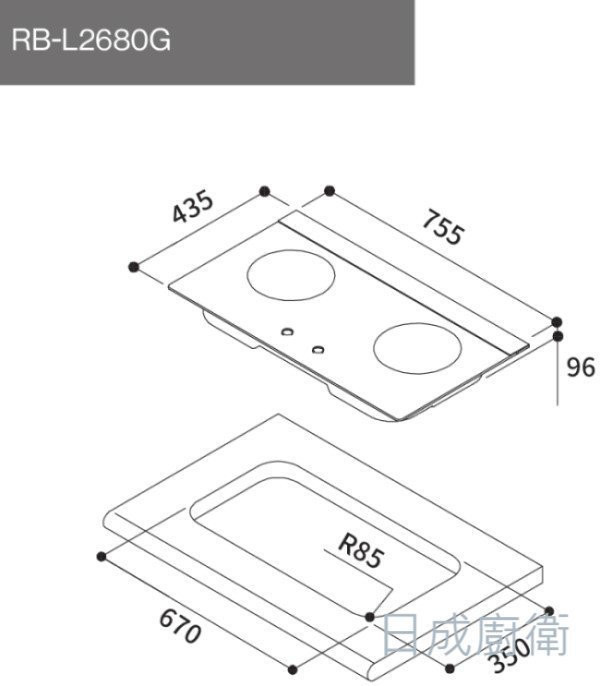 【日成】林內牌檯面爐 彩焱 RB-L2680G(B) 玻璃雙口爐