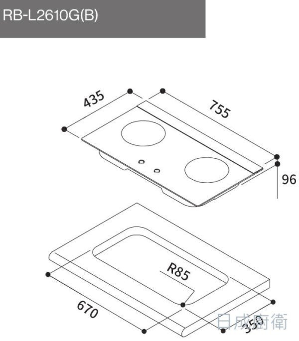 【日成】林內牌檯面爐.彩焱 RB-L2610G(B) 玻璃雙口爐