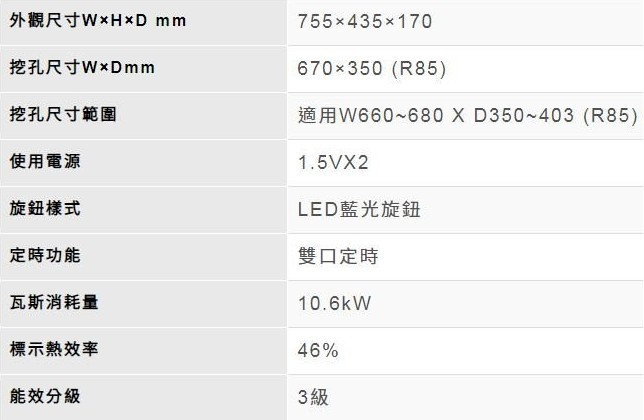 適合大部份爐具挖孔尺寸,符合多數檯面安裝需求