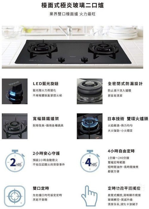 【日成】林內牌檯面爐.極炎 RB-M2620G 定時功能