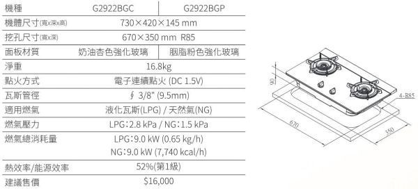 【日成】櫻花牌二口檯面爐.雙炫火 G2922BG 胭脂粉