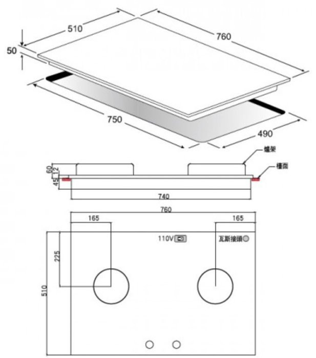 【日成】義大利 best 二口檯面爐 玻璃 大面板 檯面式瓦斯爐 GH7450-GS