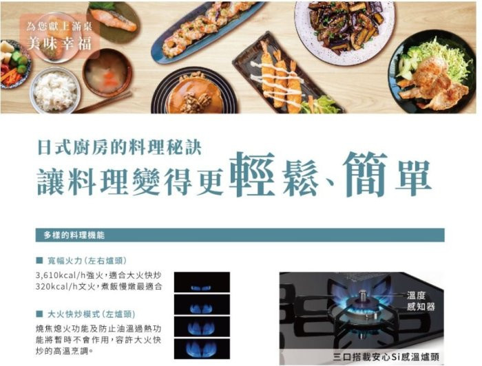 左右爐頭搭載寬幅火力強火爐頭