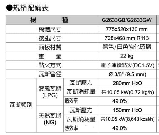 【日成】櫻花.三口.易清 G2633GW 白玻璃檯面爐