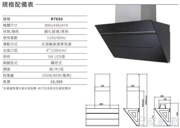 【日成】櫻花牌 90cm 近吸除油煙機 R7650