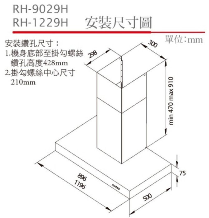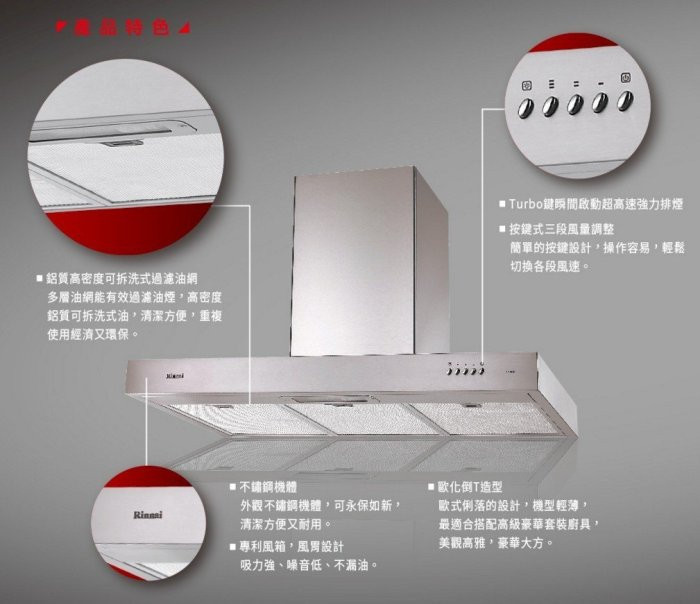 【日成】林內牌.歐化 倒T型90公分除油煙機 (RH-9029H)
