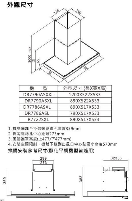 【日成】櫻花牌90cm環吸系列.倒T式歐化除油煙機 R-7722BSL/BSXL