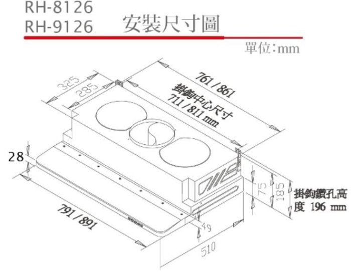【日成】林內牌80cm隱藏式油煙機 RH-8126E 電熱除油