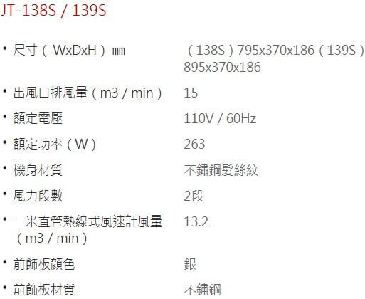 【日成】喜特麗.超薄隱藏式80cm排油煙機 JT-138S 不銹鋼