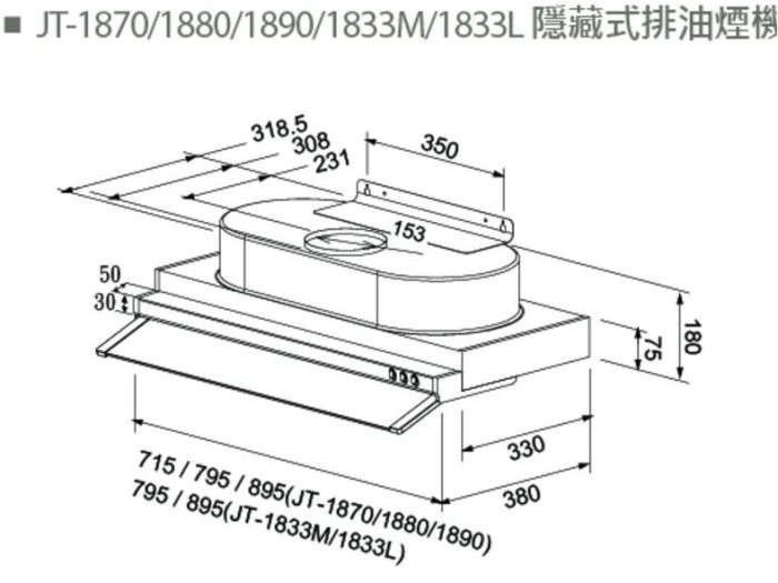 商品詳情 歐化隱藏式機體,與櫥櫃完美結合 歐化隱藏式排油煙機∼優質的廚具讓消費者做個智慧生活家 下班之後卸下疲備的心,放鬆緊繃的神經,走進廚房也能簡簡單單的享受幸福的原味,成為啟動幸福生活的鑰匙 喜特麗是目前市場上最多消費者指名購買的廚房四機品牌之一。長期致力於歐化廚具的研發與製造,不斷的創新與精進。喜特麗公司也藉由這股消費者廣大的支持力量秉持著三個第一的精神,「安全第一、品質第一、享受第一」。不斷的以顧客的使用立場來省思廚具配件的需求與價值企業的精神與目標。「健康優先、服務優先、消費者優先」,創造出喜特麗的品牌價值。 印上「喜特麗」商標的產品就是卓越的保證就是廚具配件的頂級精品。 ( 安裝處需有110V電源 ) 產品特色: ◎歐化隱藏式機體,與櫥櫃完美結合 ◎雙渦輪增壓排煙系統,給你清新好空氣 ◎強化玻璃擋煙管,油煙不外散◎PL燈管,高亮度超省電 商品規格 諮詢專線(LINE-ID): @rech 市話:(03)379-3207 ◎本產品一經安裝,不得退貨 ◎送貨時間:週一 ~ 週五◎本產品文案為原廠所提供,若有變動敬請參照實際商品為準◎本產品網頁因拍攝關係,圖檔略有差異,實際以廠商出貨為主 商品保證 我們所提供為全新產品,並提供以下保證:保固期:一年保固範圍:產品故障顧客諮詢服務中心:本站客服中心。 商品運送 我們所提供的產品配送區域僅限於台灣本島(外島地區的朋友請利用台灣親友地址做為收貨地址)。 我們將於完成收款確認後2個工作天內(不含例假日)送產品至指定地點(預購、特別訂製商品除外)。 【日成】喜特麗70cm隱藏式油煙機 JT-1870 TWD $7,400 TWD $5,940