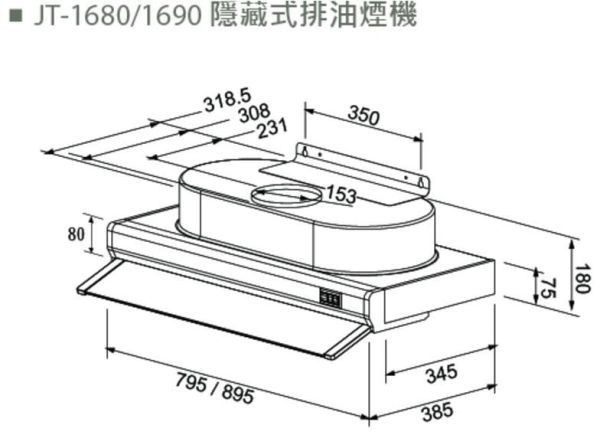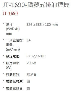 【日成】喜特麗90cm隱藏式油煙機 JT-1690W