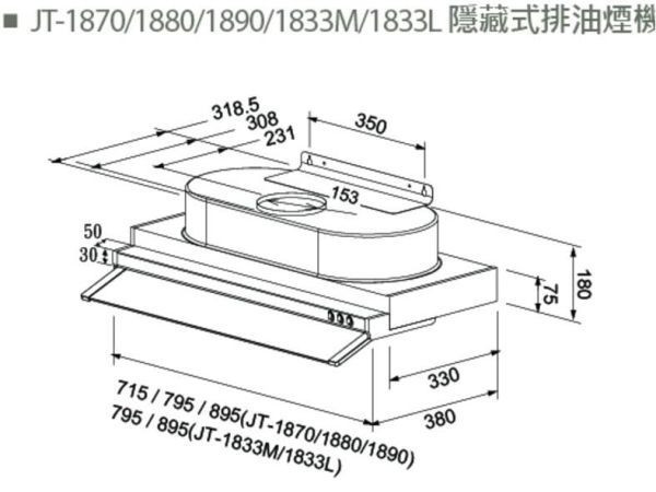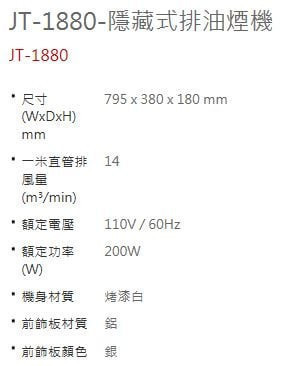 【日成】喜特麗80cm隱藏式油煙機 JT-1880 超薄