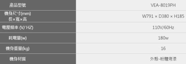 【日成】豪山牌.80cm VEA-8019PH 電熱除油.隱藏式除油煙機