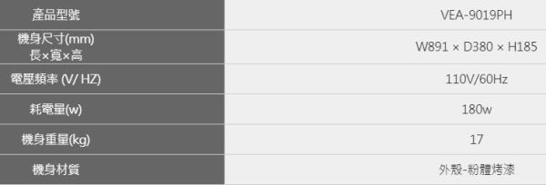 【日成】豪山牌 90cm VEA-9019PH 隱藏式油煙機 電熱除油