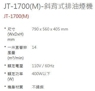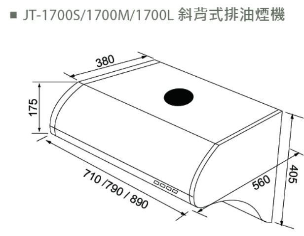 增壓馬達-斜背式排油煙機(JT-1700M) ~~優質的廚具讓消費者做個智慧生活家