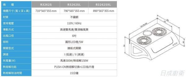 【日成】櫻花牌 70cm高速雙渦輪+雙效除油.斜背式除油煙機 R-3262S