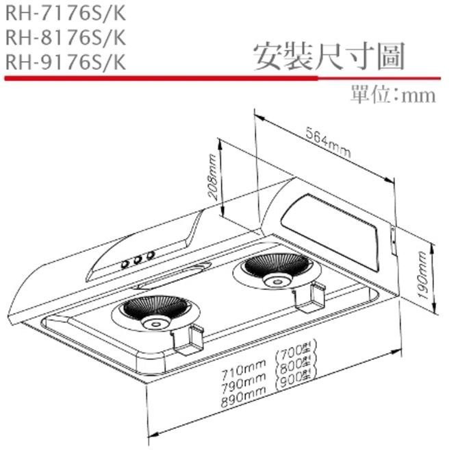 【日成】林內牌-90CM白鐵傳統式除油煙機 ( RH-9176S )