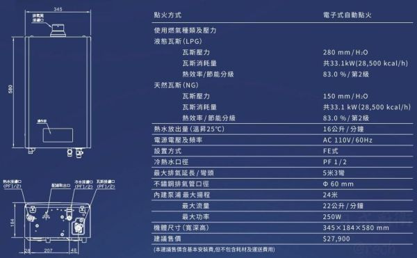 【日成】櫻花牌16L四季溫渦輪增壓 DH-1693F 熱水器
