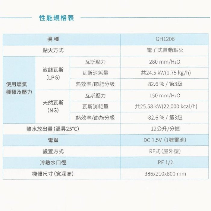 【日成】櫻花12L公寓專用.屋外抗風型熱水器 GH-1206