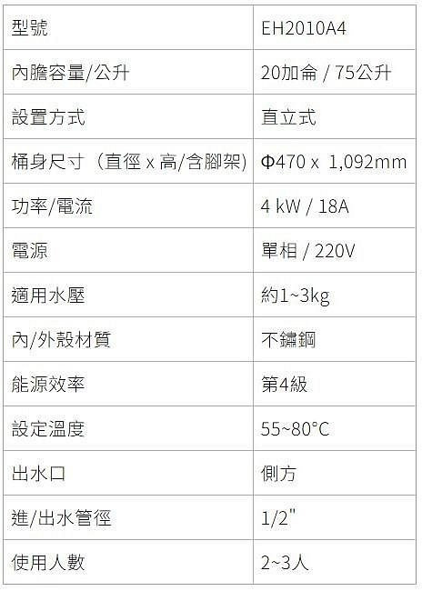 【日成】櫻花牌20加侖.落地型.儲熱式電熱水器 EH-2010A4