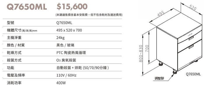 【日成】櫻花牌50cm落地式烘碗機.不銹鋼雙抽 Q7650ML