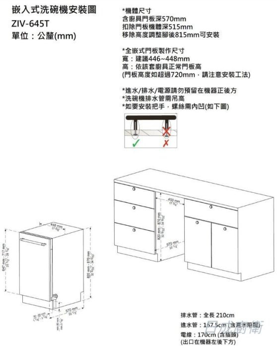 【日成】Amica寬45cm全嵌式洗碗機 ZIV-645T