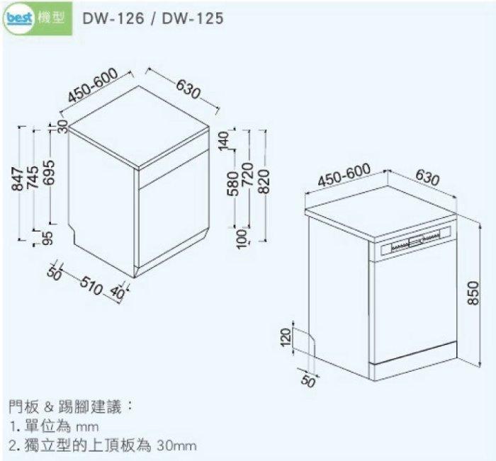 【日成】best獨立式洗碗機110V13人份 DW-126W 內附濾心.不用加軟化鹽 展示機