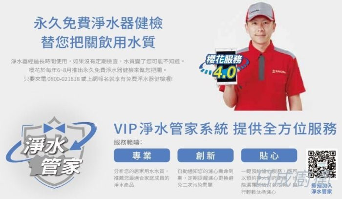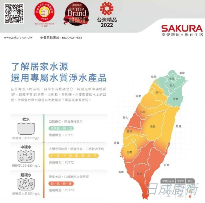 【日成】櫻花牌 生飲淨水器 P0771 除菌.軟水雙效