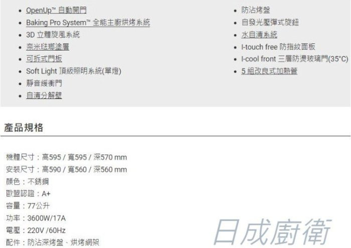 【日成】Amica 嵌入式烤箱 烘培 XTS-1000IX TW