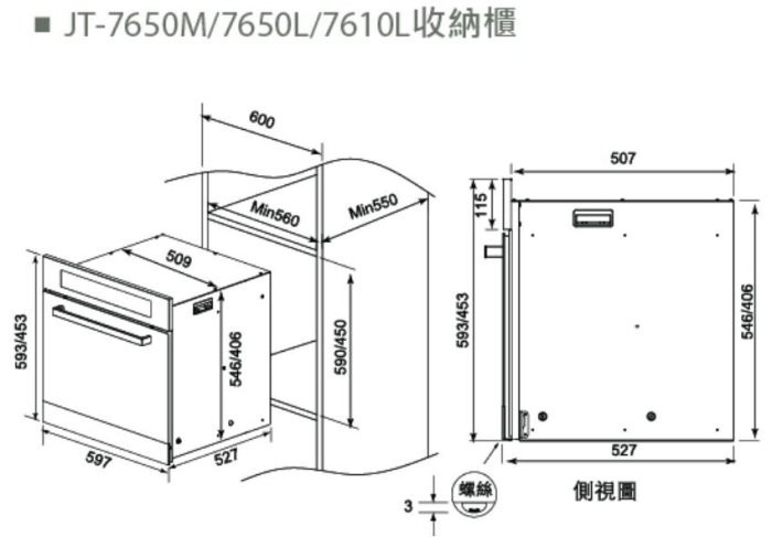 【日成】喜特麗 嵌入式電器收納櫃 JT-7650L 炊飯櫃 (不銹鋼托盤 .內框)