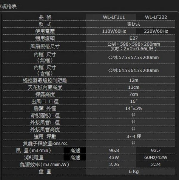 ◆110V電壓及220V電壓,高轉速馬達輸入功率均小於52W,比一般風扇省30~40%電力。